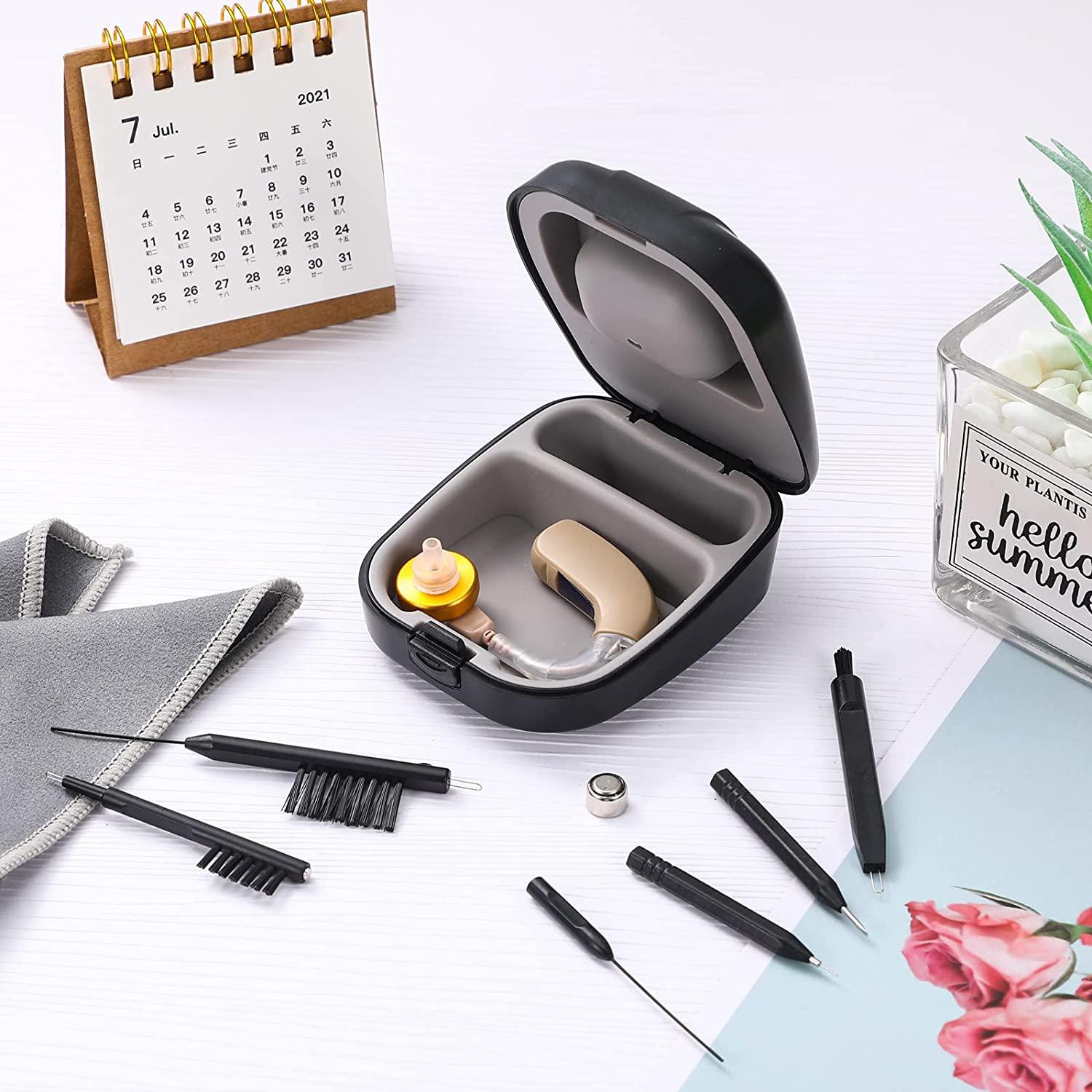 8 Pieces Hearing Aid Cleaning Tools Hearing Aid Case Hearing Aid Box Hearing Aid Cleaning Kits Earpiece Hearing Aid Vent Cleaner Microfiber Cloth For Sound Amplifier Black